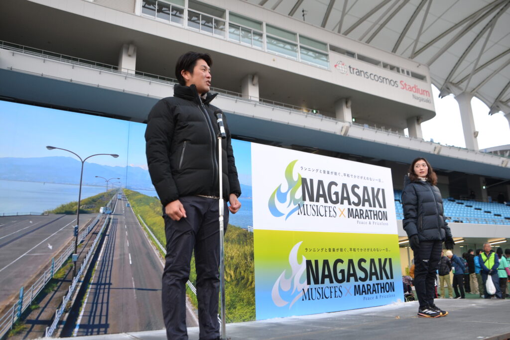1月25日(日)、トランスコスモススタジアム長崎で、長崎ミュージックフェスマラソン1年前イベント(第6回諫早・雲仙ウルトラウォーキング-ファイナル-、ステージイベント「Ready Go!」)を開催しました。元競歩選手の森岡 紘一朗さんと岡田 久美子さんが応援に駆けつけたウルトラウォーキングには約1,000名参加。マラソン予定コースとほぼ同じルートをまわり、完歩を目指しました。またステージイベントでは、ダンスやミュージックライブ、トークショーなどを通して、1年後に控えるミュージックフェスマラソンの魅力を伝えました。